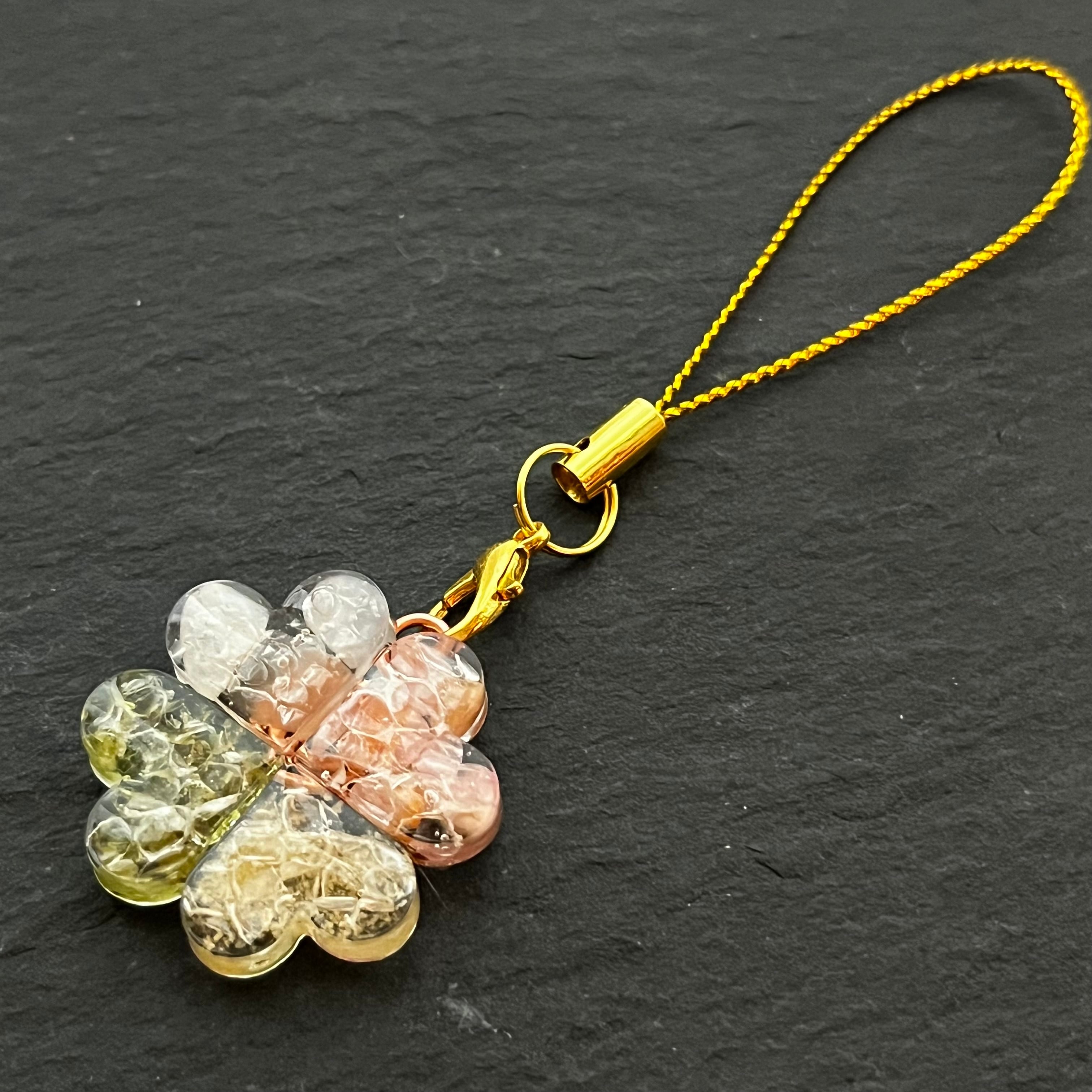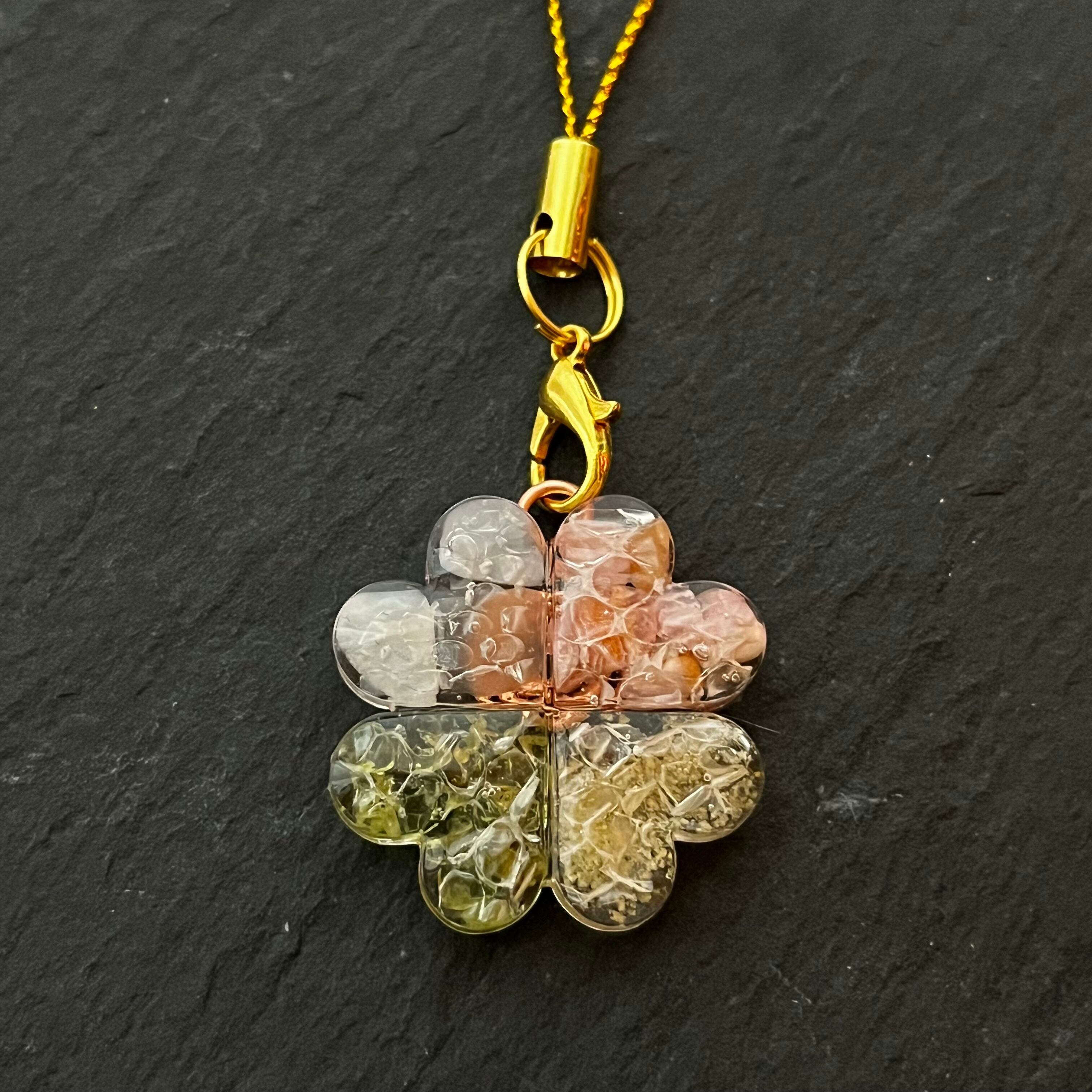 白蛇御守りNo.r674★クローバーチャーム インカローズ ムーンストーン
