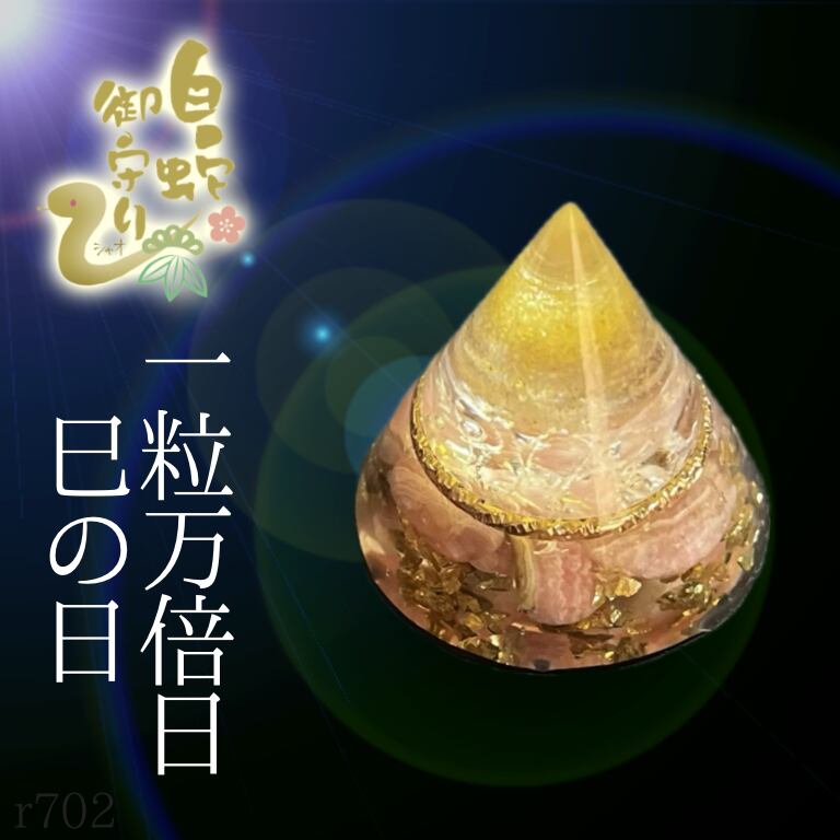 白蛇御守りNo.r702★黄金盛り塩オルゴナイト・インカローズ