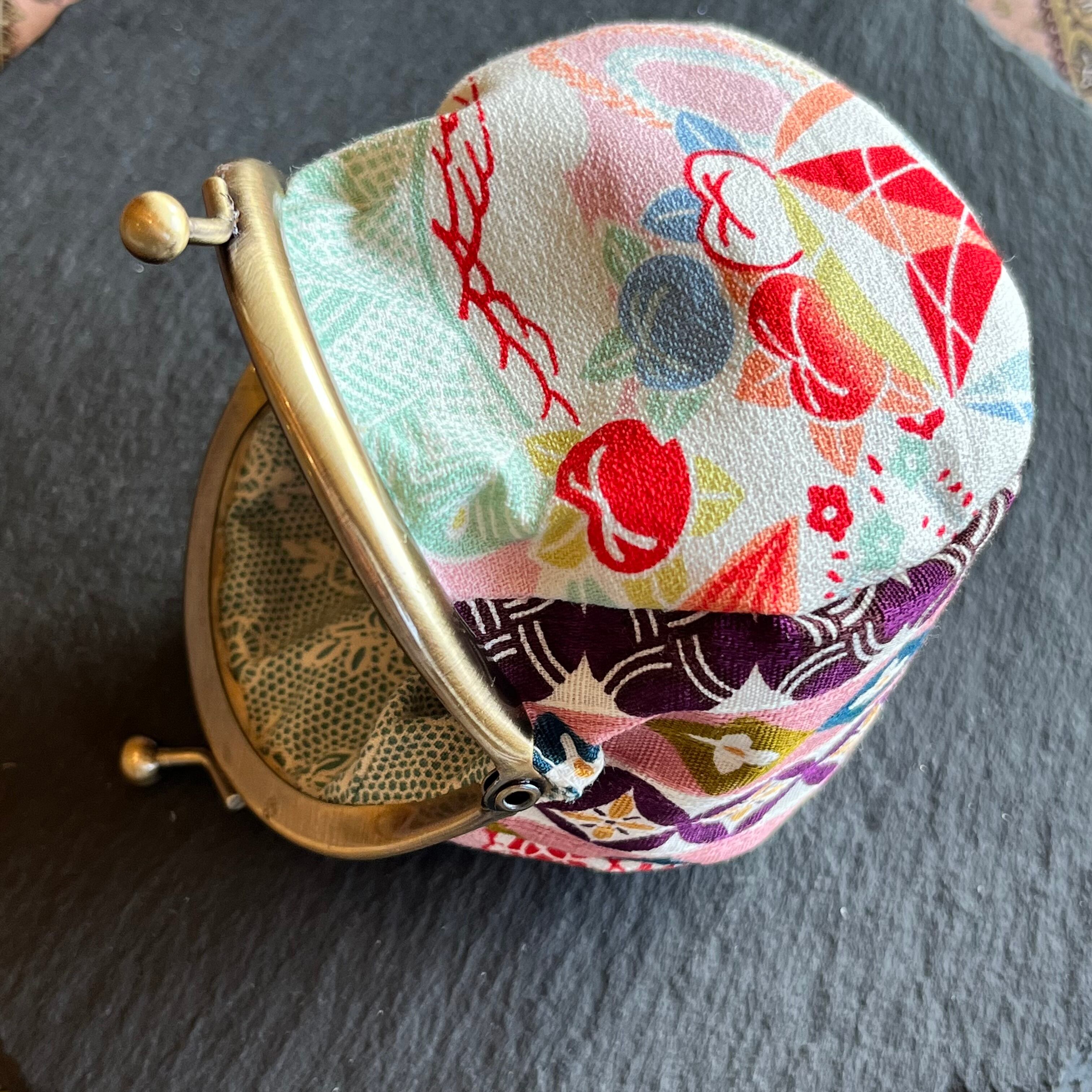 手のひらに収まるころんとしたがま口ポーチ。まちも広く意外と入れ込めます♫